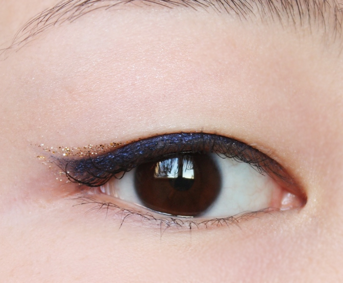 I’ve completely fallen for the blue eyeliner recently, and I love it even more with the gold glitter — they really make each other pop!