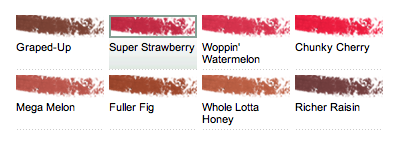 P.S. The other shades will be: Chunky Cherry, Fuller Fig, Graped-Up, Mega Melon, Richer Raisin, Whole Lotts Honey, and Whoppin’ Watermelon. Here are some swatches from the Clinique site, in case you’re interested!
