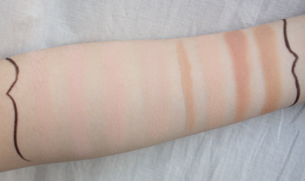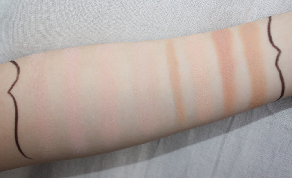 L – R: NC 15, NW 15, the Balm timeBalm Lighter Than Light, Hard Candy Glamoflauge Light tube, Hard Candy Glamoflauge Light pencil, NC 20, NW25, NC30. All MAC shades are Studio Finish concealer.