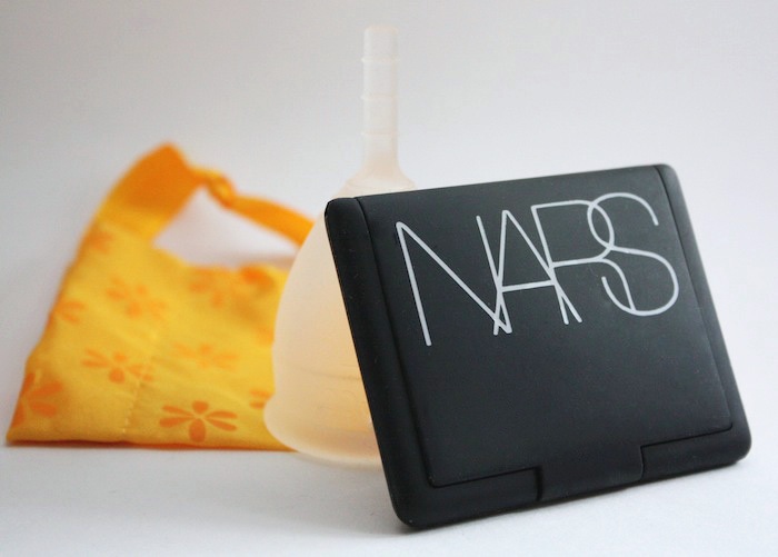 The shape: I wanted to give you ladies a really good idea of the size of the Lunette, so it went on a bit of a photoshoot with some popular beauty products ;) The Lunette ismore pear-shaped than the DivaCup – it’s the parabola to the DivaCup’s absolute value function, if you will. To each her own, I know, but I personally find that this helps it sit more comfortably (and makes removal a fair bit easier!)