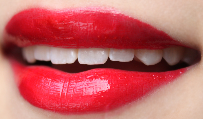 This lovely gloss is Annabelle Bitten, a gorgeous shimmer-free red. Check out the review and swatches here! It looks really different full-on (image below), but I adore it as a stain.