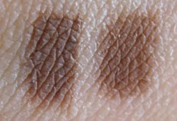 I figured this one out a couple weeks ago — it’s really nifty! When you line on top of shadow with a black gel or cream liner (I used my Blacktrack, hence the title) it sometimes actually alters the colour of the shadow… check out the example below.